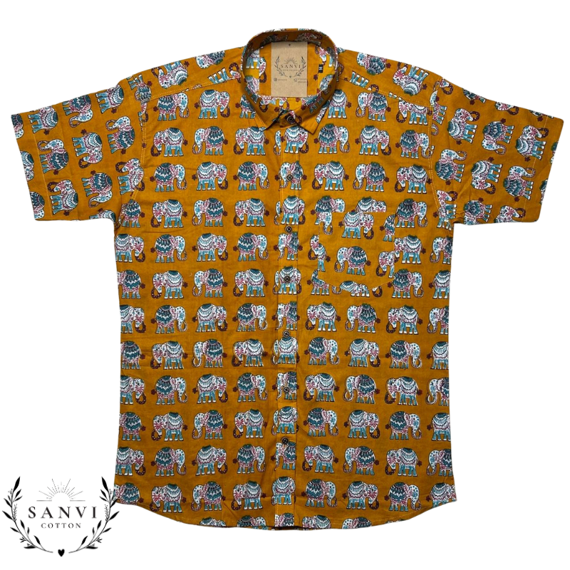 Half Sleeves Shirt | Orange Colour | Sanganeri Print