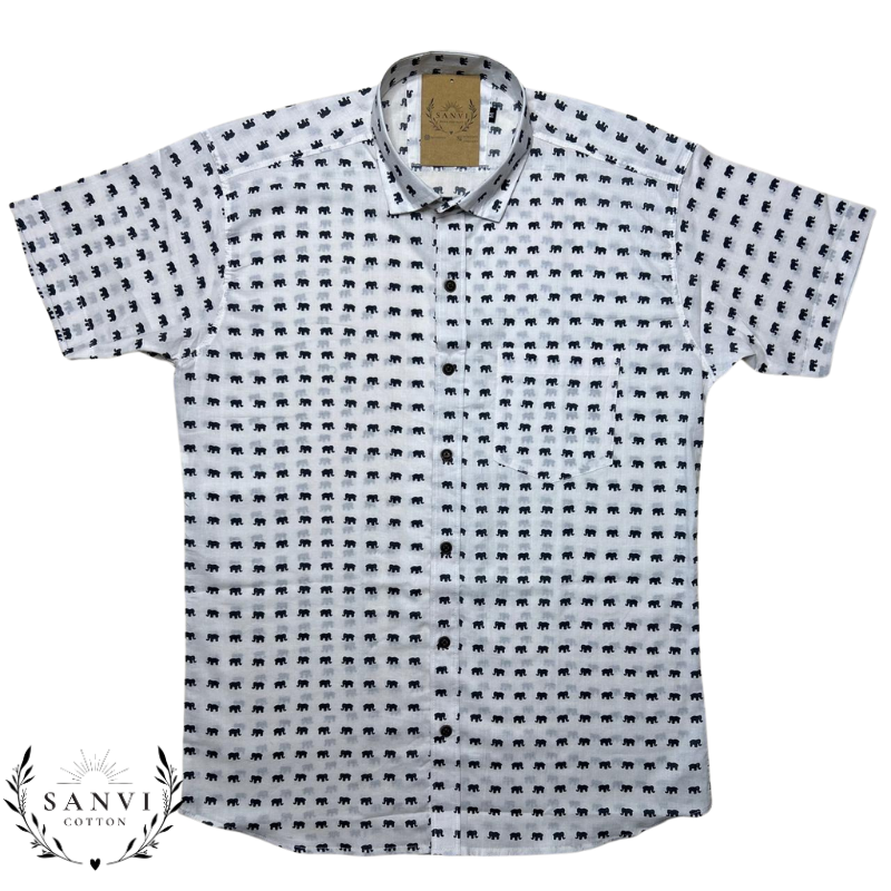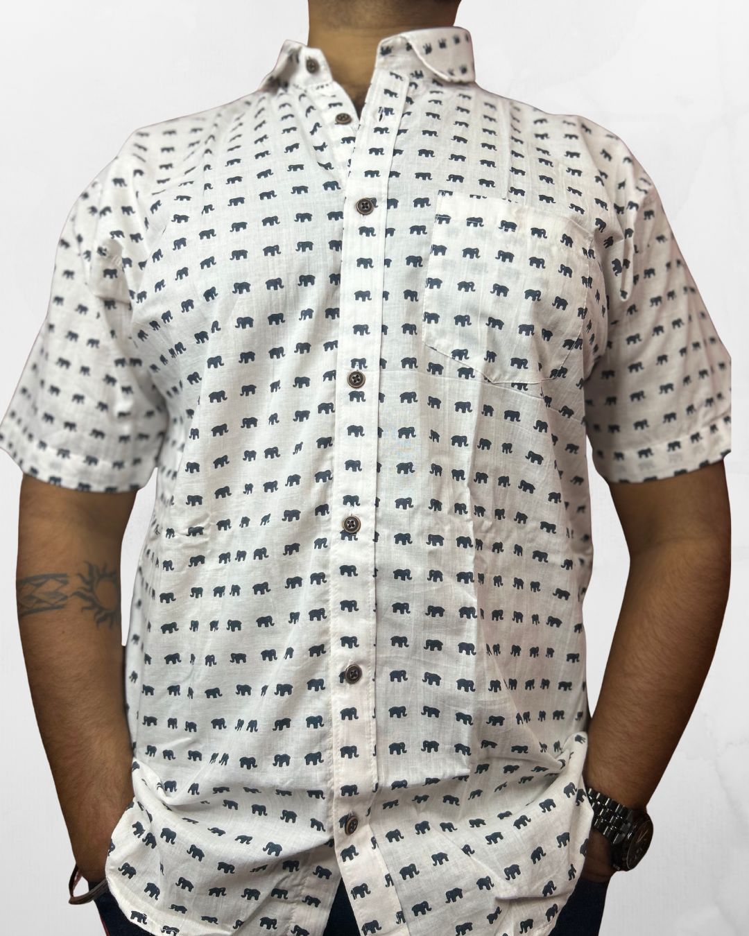 Half Sleeves Shirt | White Colour | Small Elephant Print